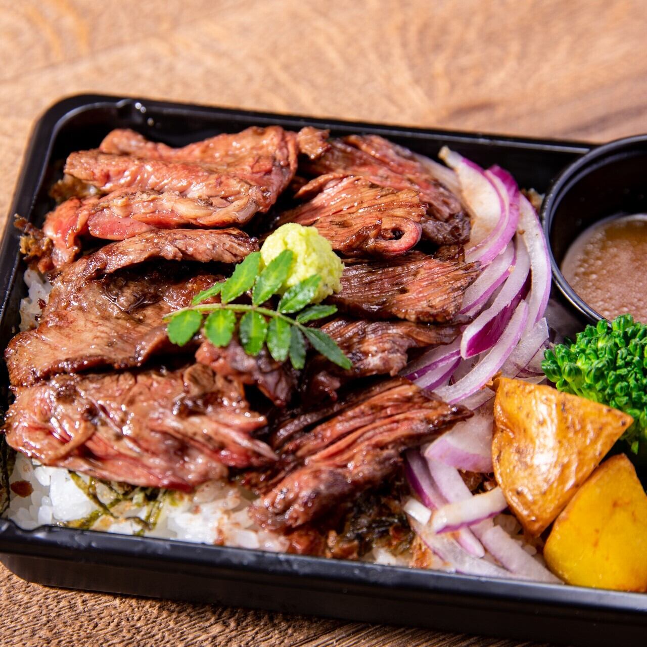 "プライムビーフ"牛サガリ × 肉BENTO 自家製ジャポネソース "Prime Beef" Beef hanging tender BENTO with homemade japonais sauce
